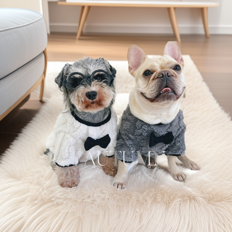 Cross-border sweater Perancis dengan dasi kupu-kupu ember Perancis Corgi pakaian beludru dua kaki musim gugur dan musim dingin pakaian anjing besar pakaian hewan peliharaan grosir