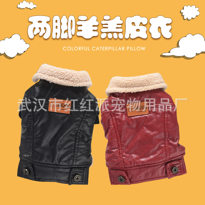 VIP bear mantel kulit domba kaki dua, pakaian setengah panjang berlapis katun untuk anjing peliharaan Musim Dingin