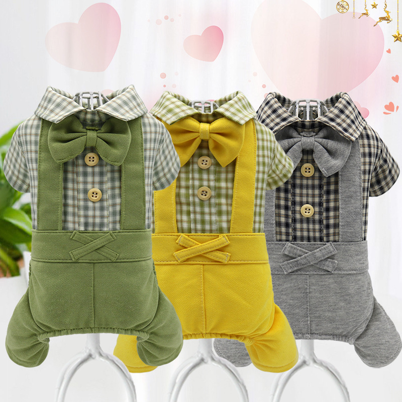 Pakaian anjing musim gugur dan dingin, pakaian kasual anjing dengan tali kotak-kotak, pakaian anak anjing Musim Semi