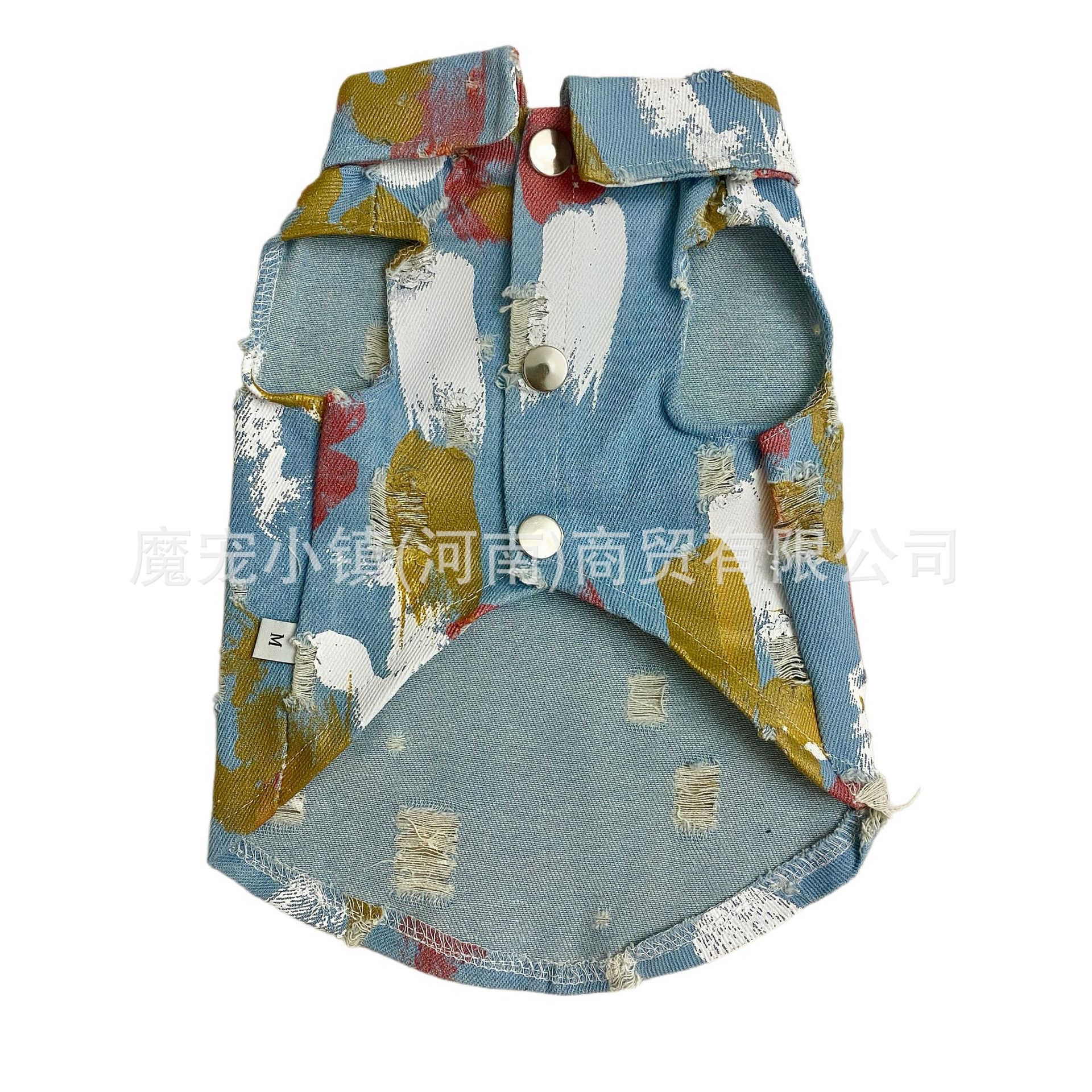 Rompi hewan peliharaan Denim, pakaian anak anjing tipis, musim panas, teddy bear Corgi Marquis besar, anjing, kucing pengambil emas