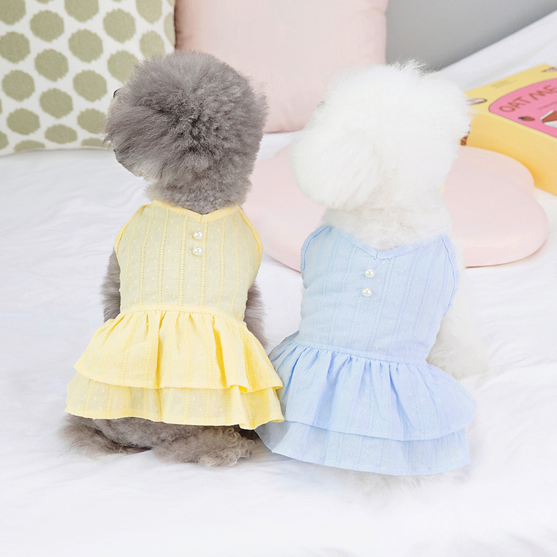 Pakaian gaun putri peliharaan pakaian anjing peliharaan pakaian hewan peliharaan rok segar mutiara 23 baru musim semi