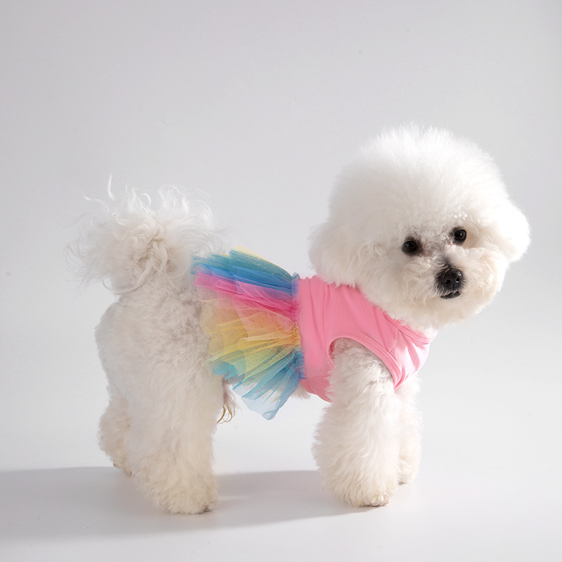 Rok anjing baru musim semi dan musim panas 2024 pakaian anjing tipis nyaman gaya putri rok kasa hewan peliharaan warna-warni pabrikan