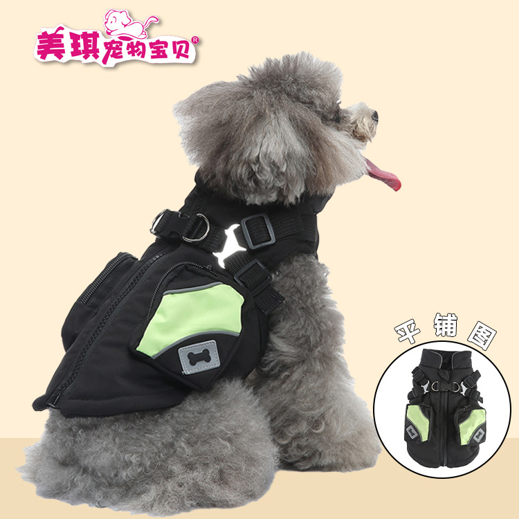 Perlengkapan anjing lintas batas pakaian bantalan katun musim dingin populer pakaian anjing ritsleting belakang dada tebal pakaian hewan peliharaan jaket anjing kecil dan sedang