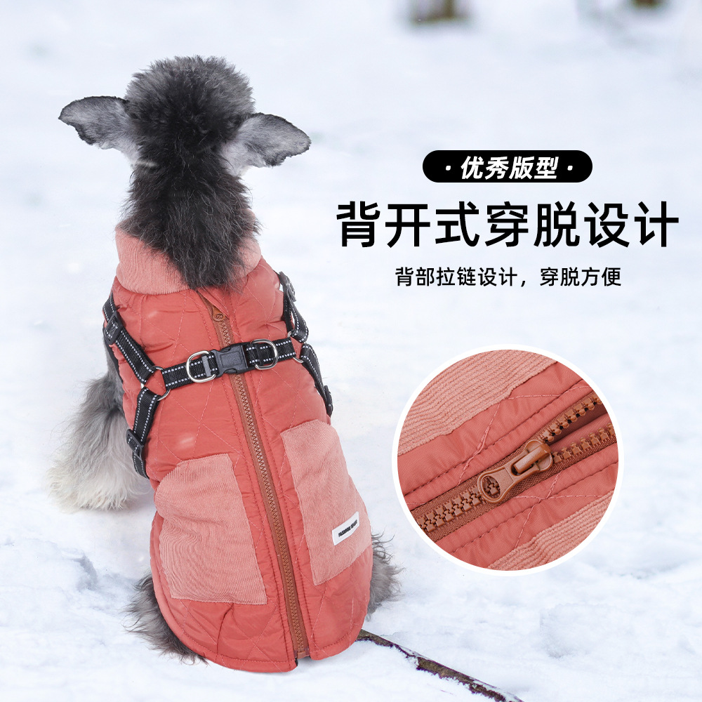 Pakaian anjing peliharaan lintas batas pakaian Teddy chenari anjing kecil dan sedang musim gugur dan musim dingin jaket berlapis katun merah tebal