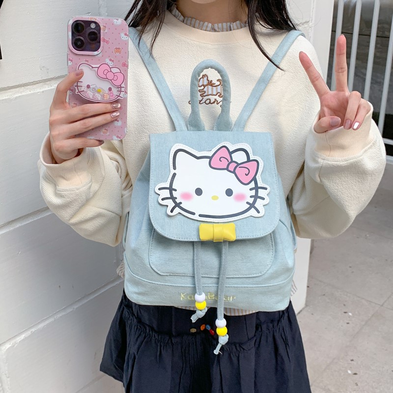 韩国ins少女包包凯蒂猫时尚牛仔布双肩包小众高级感收纳卡通包包