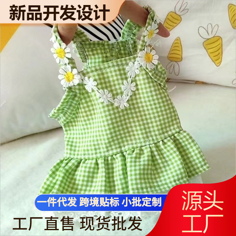 Pakaian hewan peliharaan kotak-kotak gaya channel retro baru musim semi dan musim panas 2023 pakaian anjing elegan rok kucing hewan peliharaan grosir