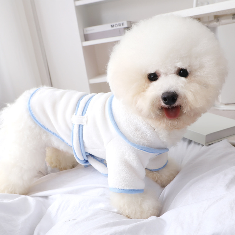 Jubah mandi hewan peliharaan langsung dari pabrik jubah mandi khusus renda segar kecil gaya Korea pakaian snap anjing kecil berkaki dua
