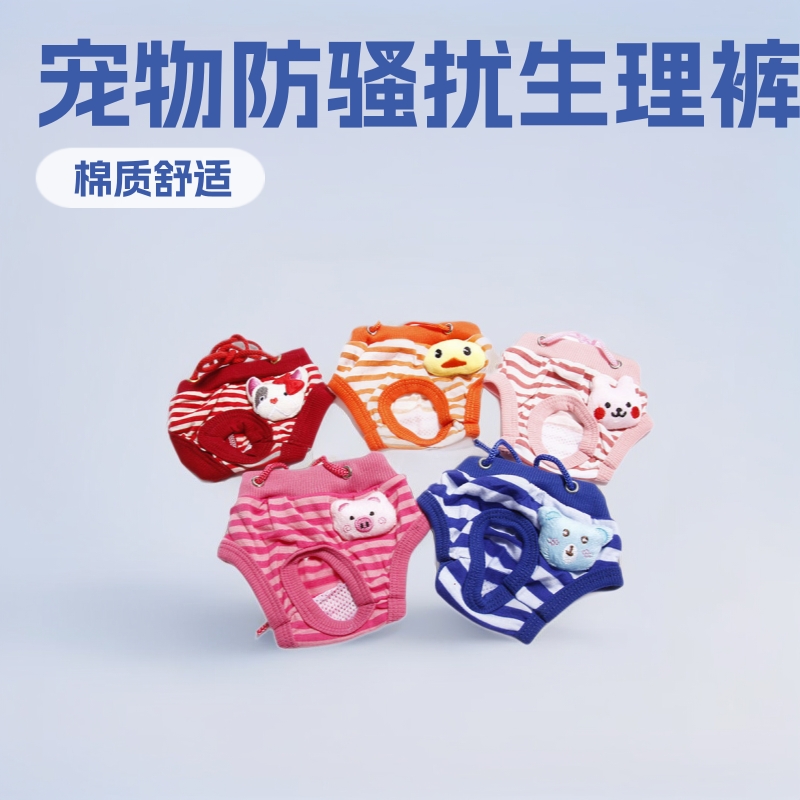 Celana terusan anjing peliharaan celana menstruasi Teddy katun bergaris wanita [stok tersedia jangka panjang]
