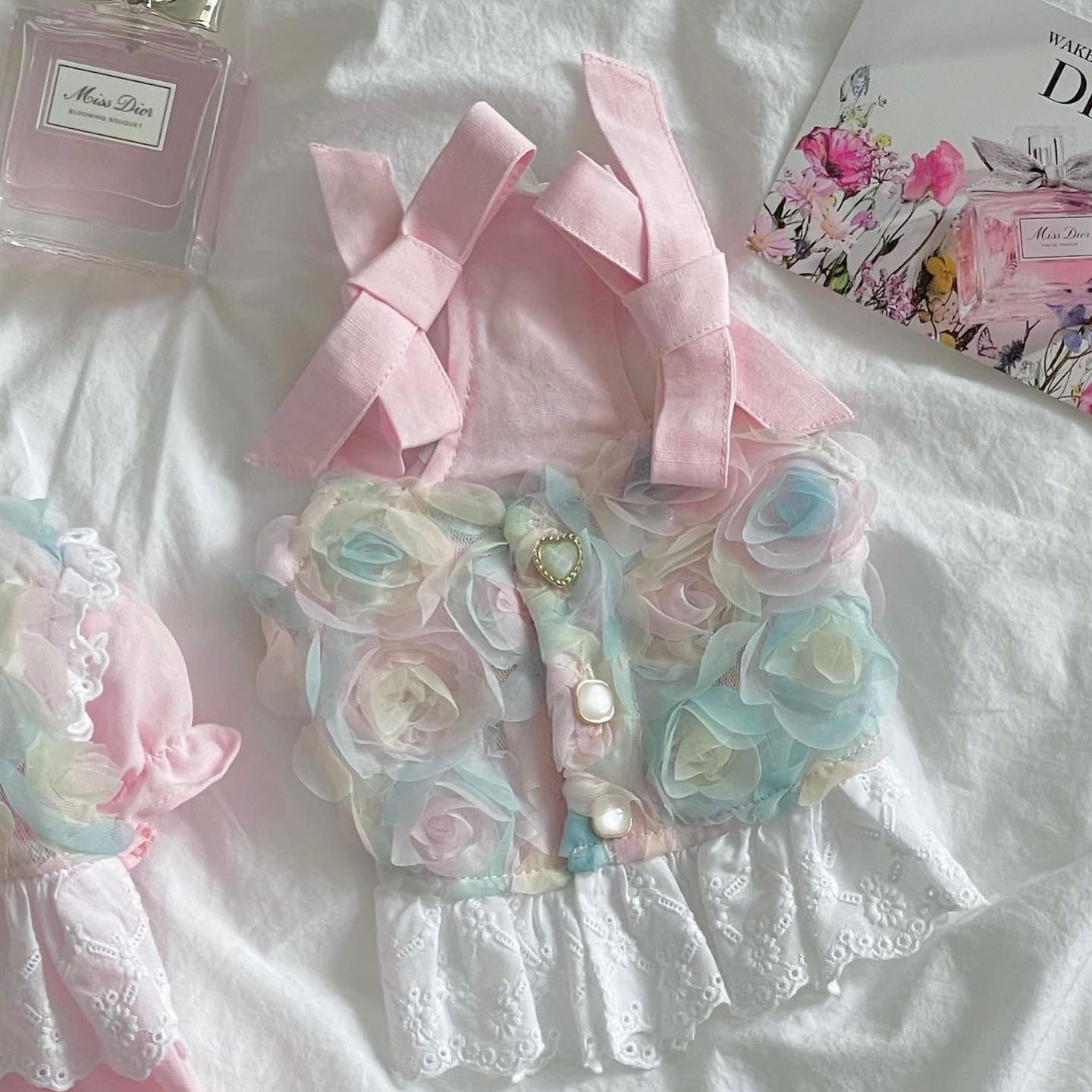 INS gaun suspender bordir merah muda putri manis huuang parfum Diao Korea Selatan pakaian anjing pakaian anjing