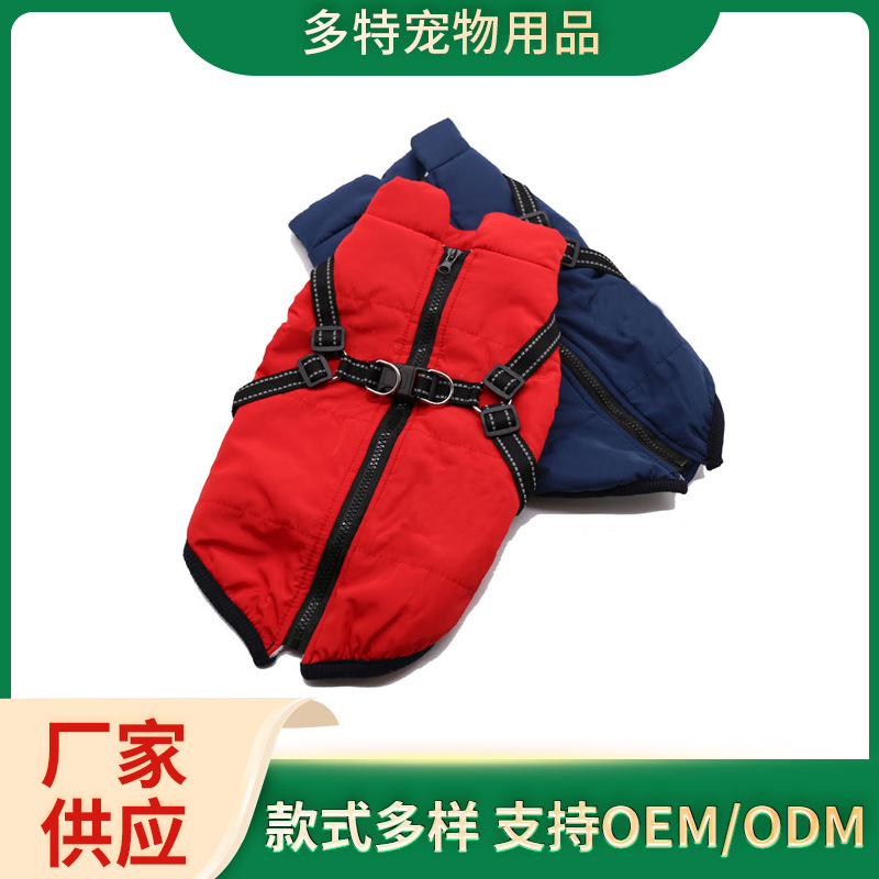 Pabrik pakaian anjing peliharaan Musim Dingin dipertebal lintas batas baru anjing berlapis katun mantel dada dan kembali satu potong rompi katun dua kaki mantel berlapis katun