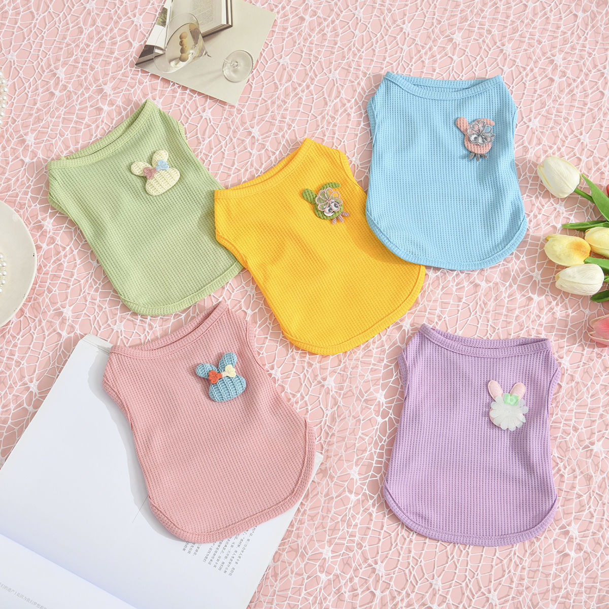 Pakaian Kucing Anjing Tank-top Kecil Bernapas Dingin Musim Panas Hewan Peliharaan Warfger Macaron Sederhana Pakaian Lucu