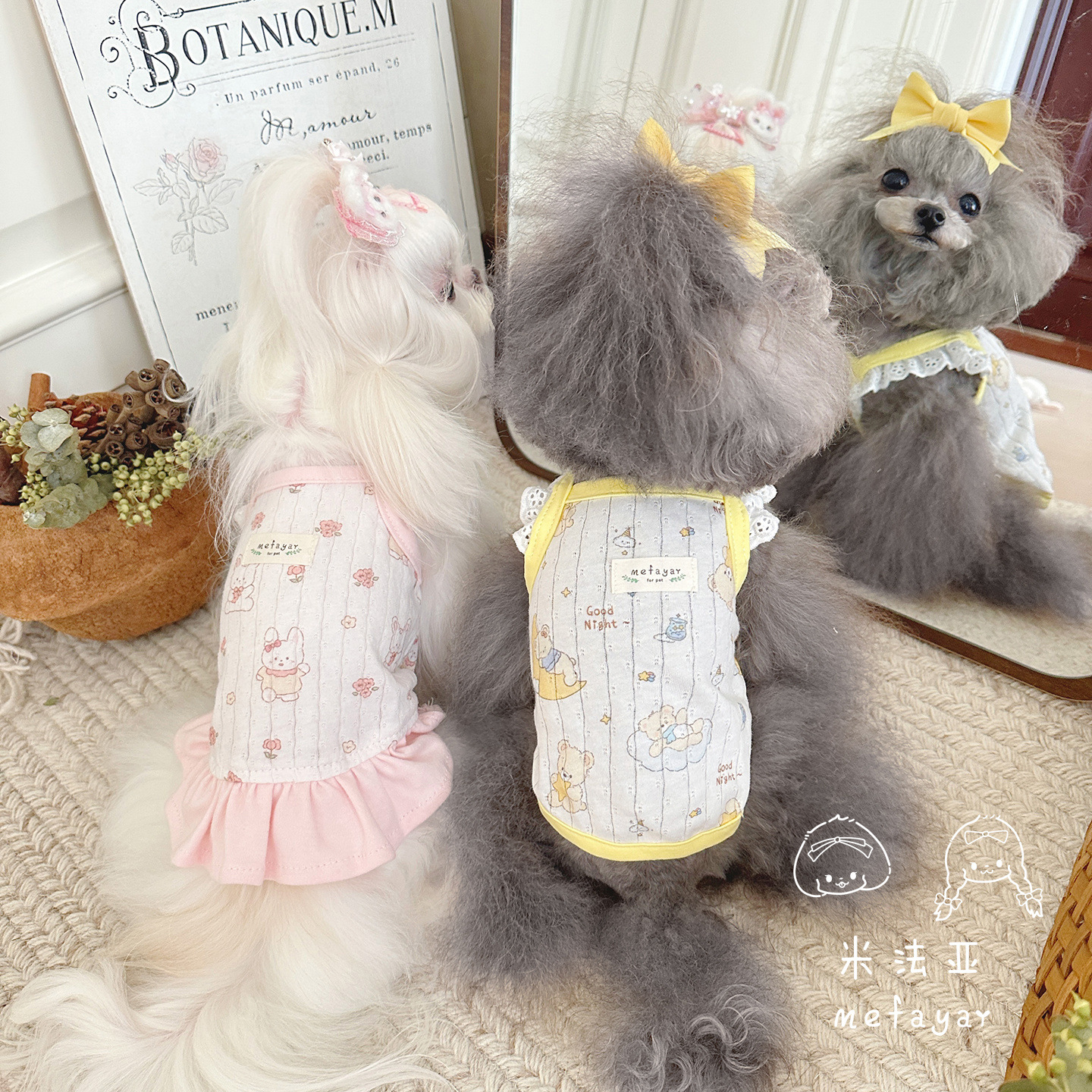 Pakaian hewan peliharaan katun pakaian kucing musim semi dan panas pakaian kucing ins pakaian ember Perancis Jepang dan Korea pakaian anjing susu kecil musim panas
