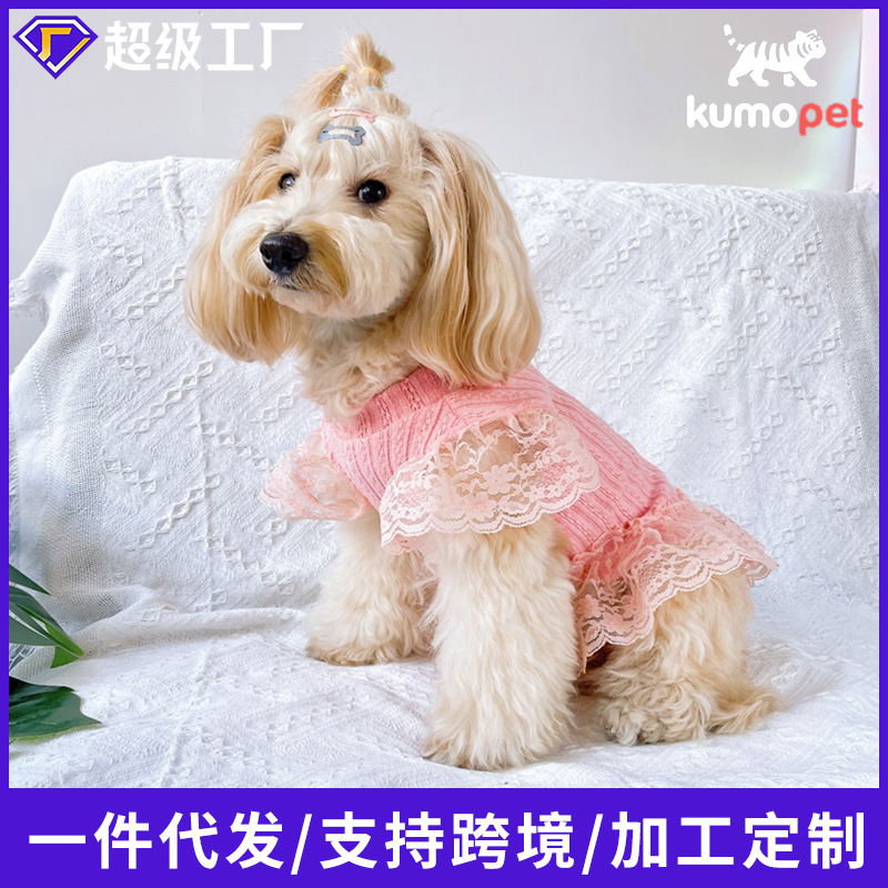 Kucing dan Anjing Pakaian Hewan Peliharaan Universal Kerah Tinggi Rajutan Lengan Terbang Rok Renda Ramah Kulit Bernapas Cocok untuk Berpakaian Empat Musim