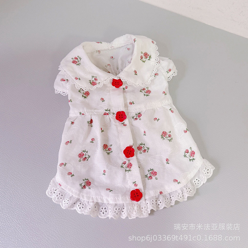 Pakaian Hewan Peliharaan Universal Kucing dan Anjing Rok Boneka Lengan Terbang Kecil Gaya Romantis dan Cantik Motif Bunga Kecil Bahan Benang Katun Bayi
