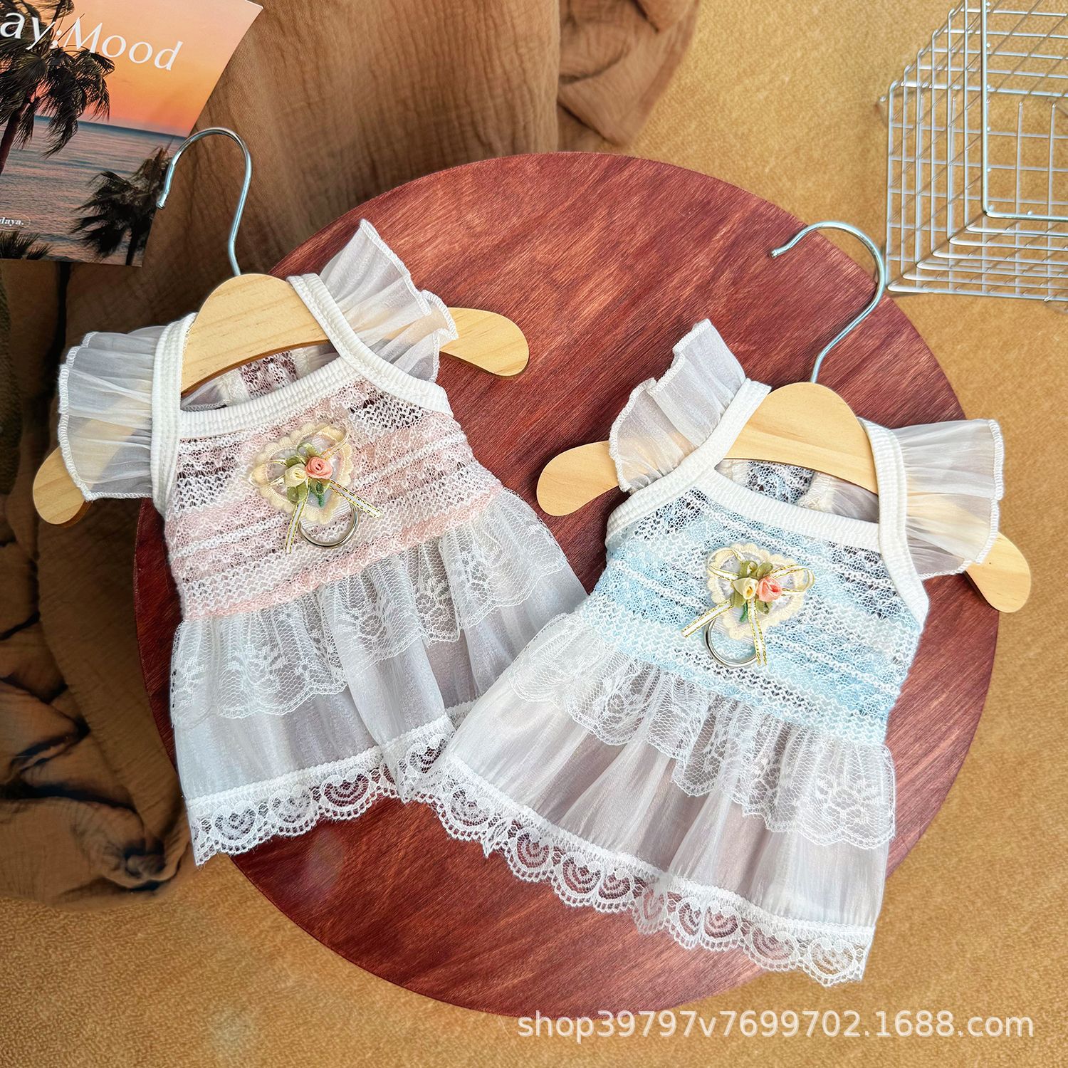 Pakaian Hewan Peliharaan Musim Semi Musim Panas Musim Gugur Model Tipis Gaya Korea Gaya Bunga Rok Tali Bordir Jacquard Musim Panas Manis dan Cerah