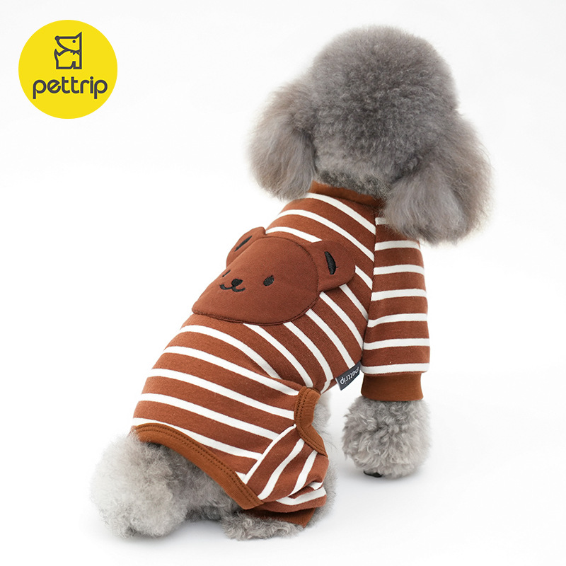 Betu Pakaian Empat Kaki Hewan Peliharaan Bergaris Pola Beruang Kecil Musim Gugur Musim Dingin Pakaian Empat Kaki Anak Anjing Berbahan Katun Dasar Hewan Peliharaan Dalaman Anjing