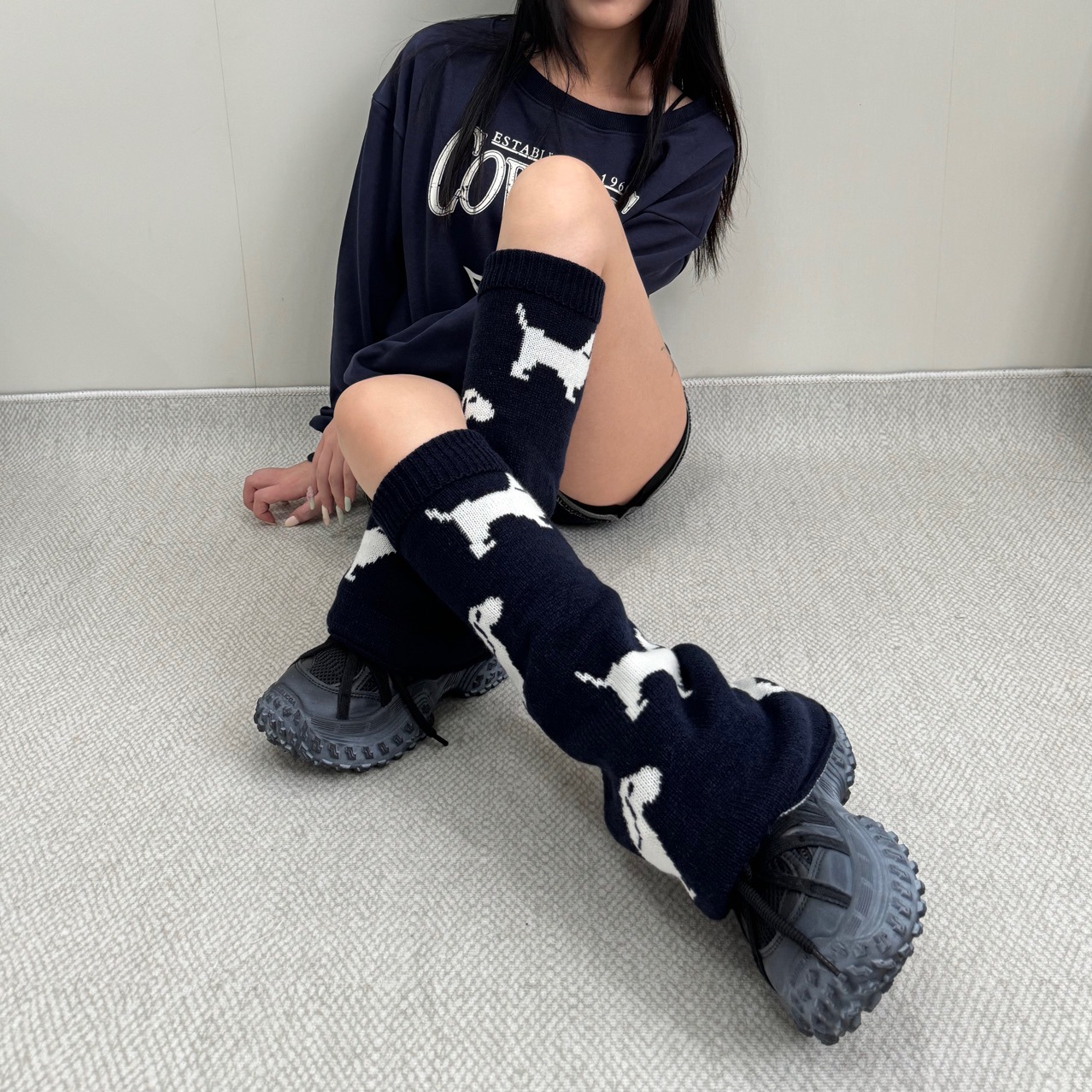 秋冬新品设计感针织阔腿袜套腊肠犬狗狗提花堆堆袜套
