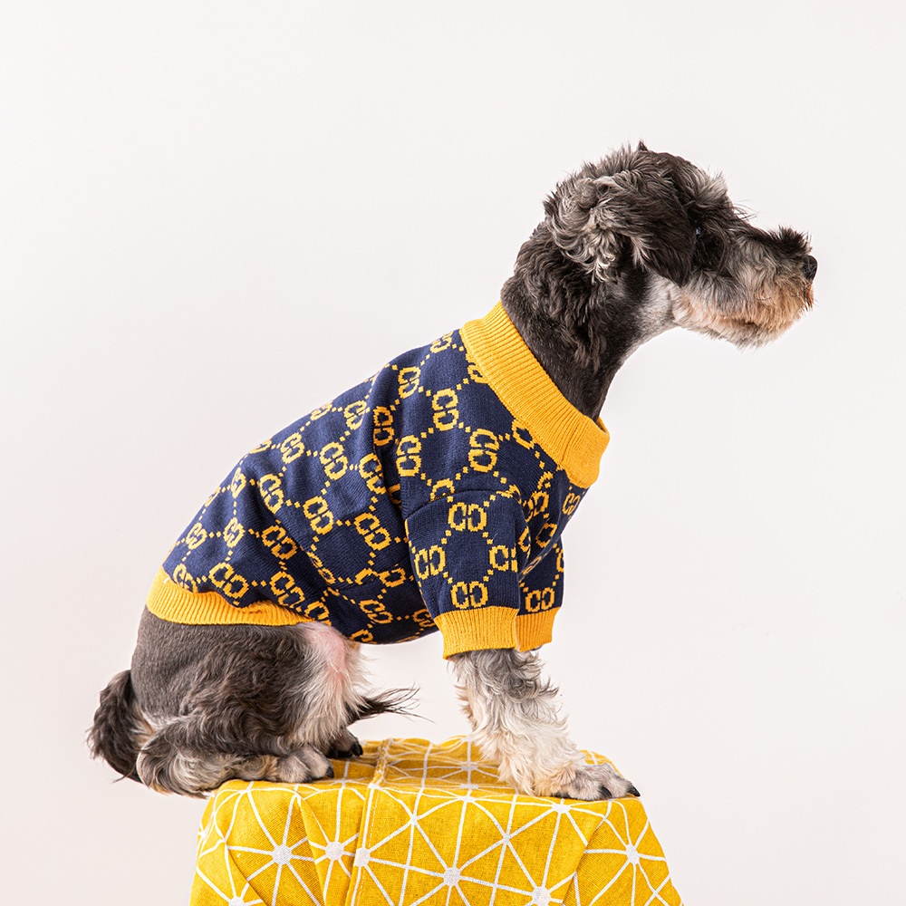 G sweter hewan peliharaan bermerek fashion baru perlengkapan kucing dan anjing luar ruangan pakaian anjing mewah fashion double-layer hangat musim gugur dan musim dingin