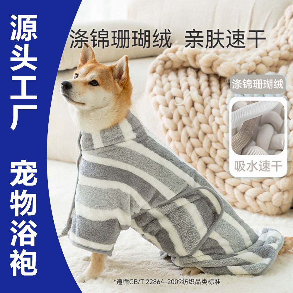 Jubah Mandi Anjing Handuk Mandi Pakaian Hewan Peliharaan Beludru Karang Polyester Jubah Mandi Hewan Peliharaan Jubah Mandi Handuk Mandi Kucing Jubah Mandi