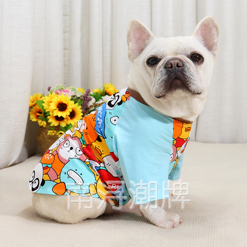 Fadou pakaian musim semi dan musim panas baru T-shirt sweater kartun Bulldog Pug pakaian anjing katun