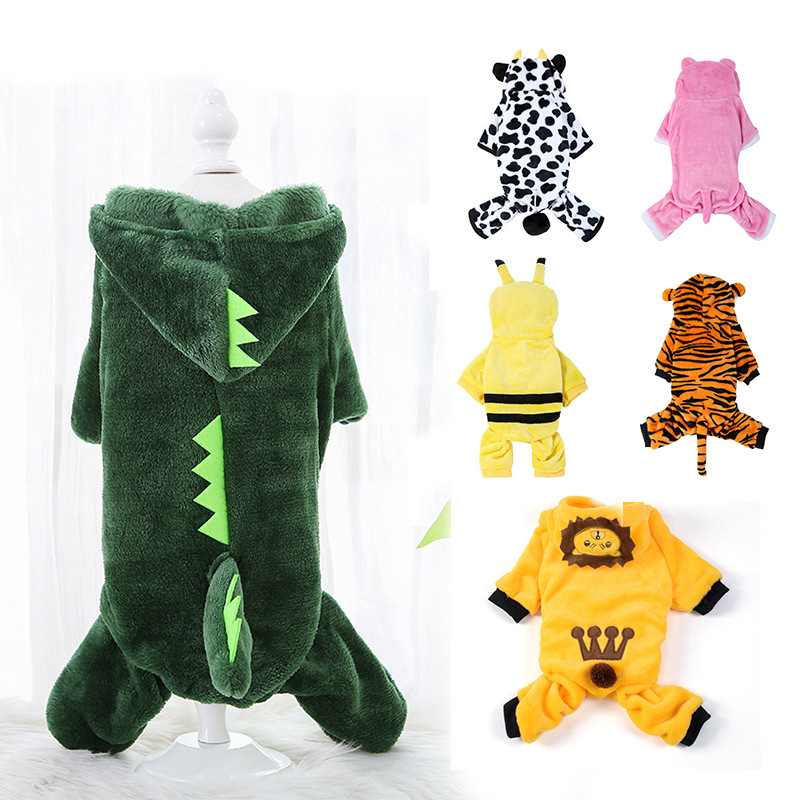 Pakaian anjing kucing kaki empat, pakaian hangat musim gugur dan musim dingin, perlengkapan anjing harimau kecil, pakaian transformasi dinosaurus