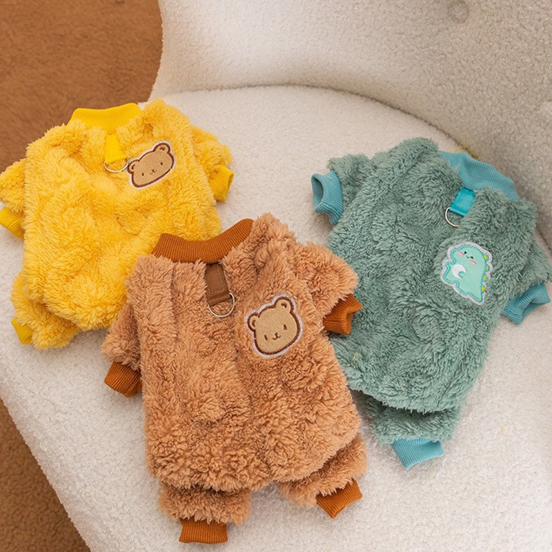 25秋冬新款宠物狗狗猫咪衣服加绒居家服可牵引 卡其小熊