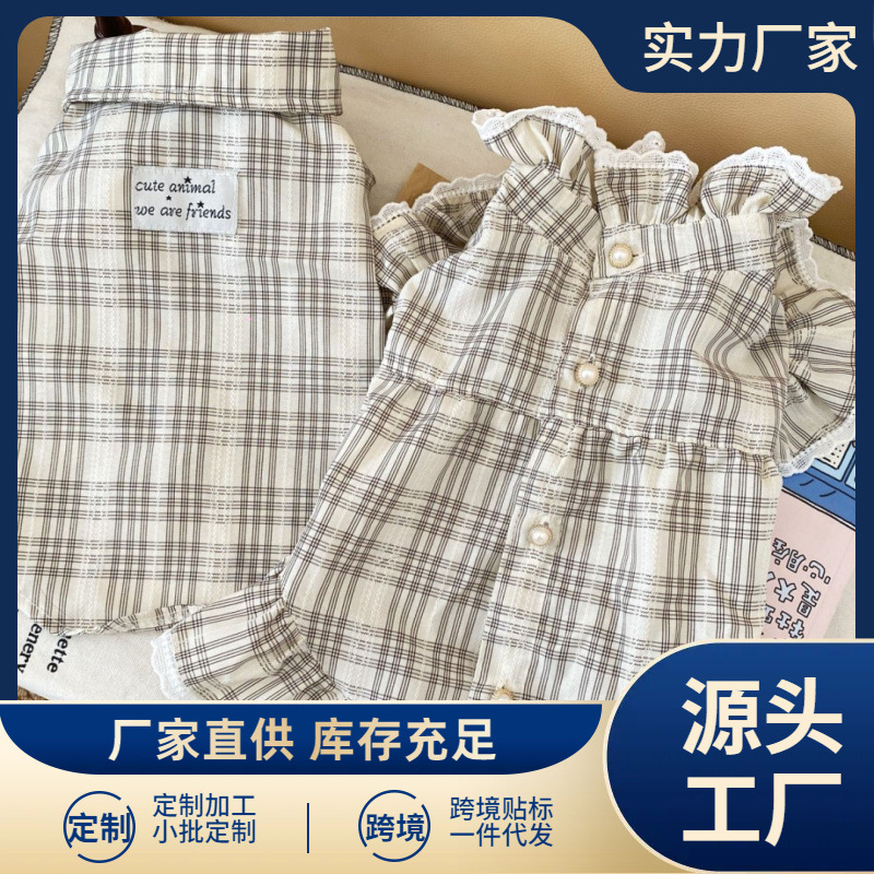 Gaun Hewan Peliharaan Pakaian Pasangan Anjing Kemeja Bergelombang Rok Pakaian Kemeja Kucing Anjing Anjing Rok Model Barat Kecil