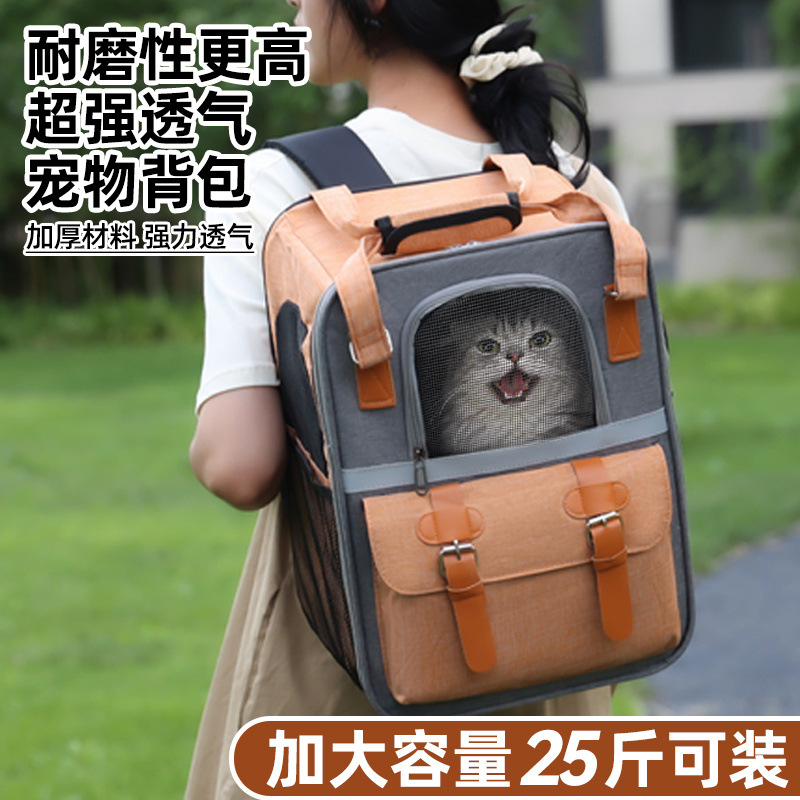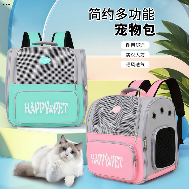 Hewan peliharaan bepergian luar kota kucing stres ransel portabel tas luar tas sekolah model baru tas selempang anti mencakar kucing