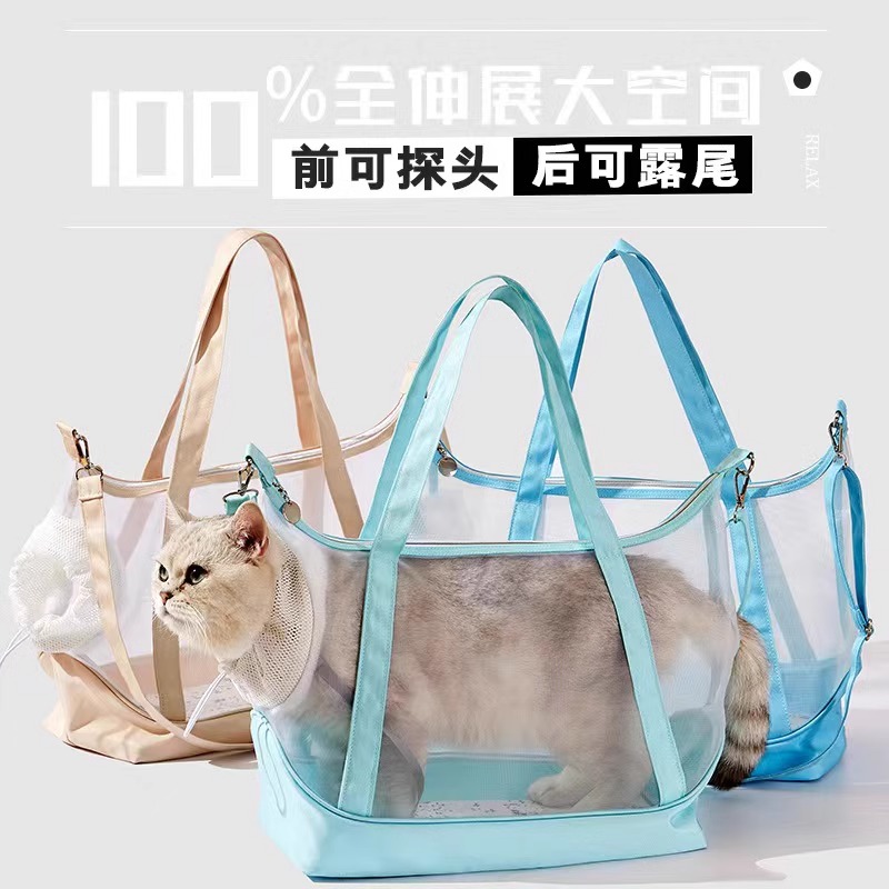 Kucing Hewan Peliharaan Tas Jinjing Bernapas Portabel Luar Rumah Tas Bahu Tunggal Panorama Tas Kucing Berjaringan Penggunaan Ganda Perjalanan Anjing Anjing