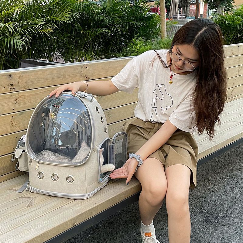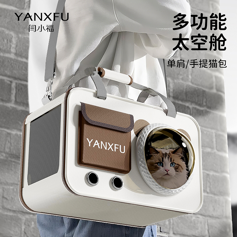Yan Xiaofu Tas Kucing Kapsul Luar Angkasa Tas Keluar Hewan Peliharaan Kapasitas Besar Portabel Tas Ransel Kucing Tas Anjing Model Ringan