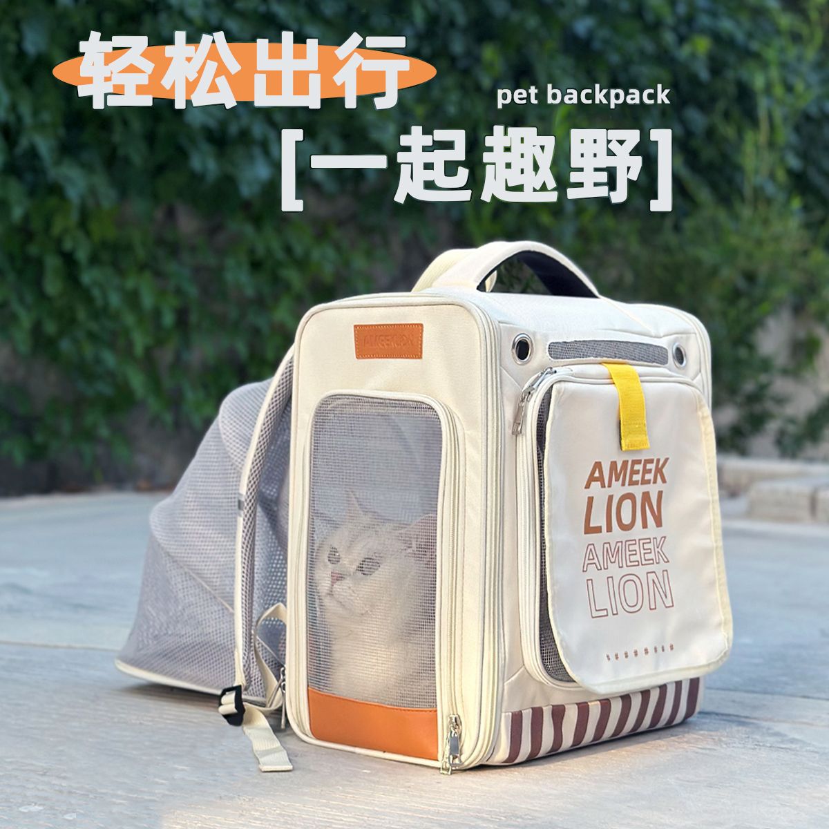 Tas Punggung Kucing Peliharaan Musim Panas yang Dapat Diperluas Tas Kucing Lipat Kapasitas Besar Jinjing Kapsul Ruang Punggung Anjing Portabel di Luar