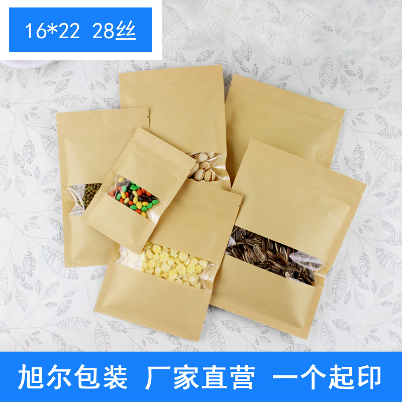 Kantong kertas Kraft 16*22 tebal kantung datar jendela tas penyegelan diri tas kemasan makanan gula coklat grosir