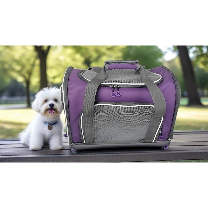 Tas Hewan Peliharaan Warna Ungu Model Kustom Tas Anjing Bahu Tunggal Tas Hewan Peliharaan Jinjing Bahu Bahu Bernapas Produk Hewan Peliharaan Multifungsi