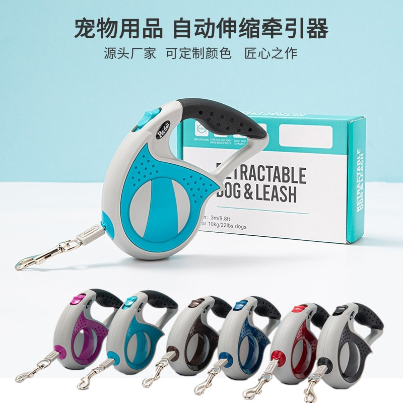Pasokan langsung pabrik tali traksi otomatis hewan peliharaan baru 3/5m tali anjing dapat ditarik perlengkapan traktor hewan peliharaan kelas atas