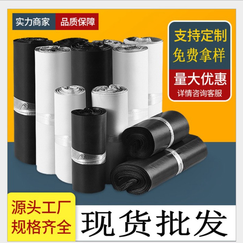 Tas kurir berperekat hitam dan putih tebal bahan baru grosir tas pakaian tahan air tas kilat kemasan logistik