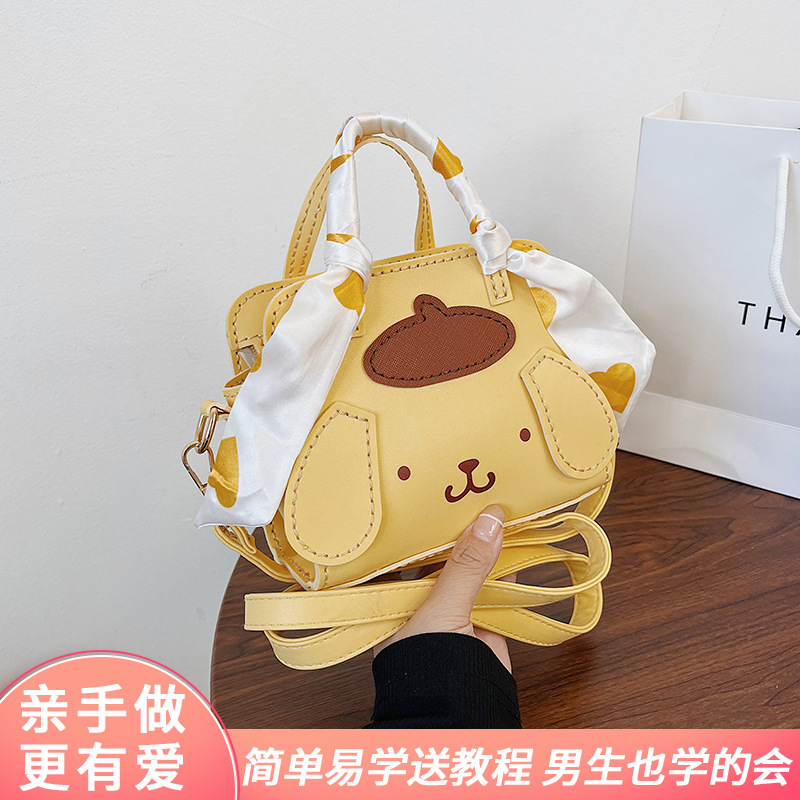 Pudding Dog tas buatan tangan diy buatan sendiri tas bahan untuk pacar selempang bahu tunggal kecil tas persegi TikTok gaya yang sama