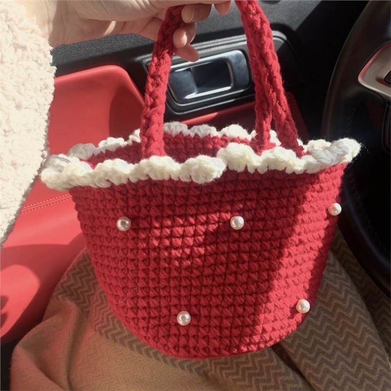Tas Ember Jarum Rajut Wol Buatan Tangan Tas Jinjing Tas Bunga Kecil Tas Bahan DIY