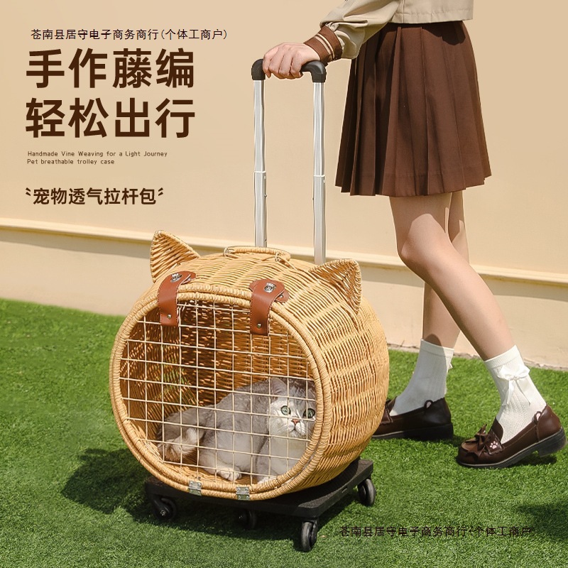 Tas Troli Luar Kota Kandang Kucing Musim Semi Musim Panas Bersirkulasi Rotan Tas Kucing MUJIE Troli Kecil Banyak X Hewan Peliharaan Portabel Gratis Ongkir