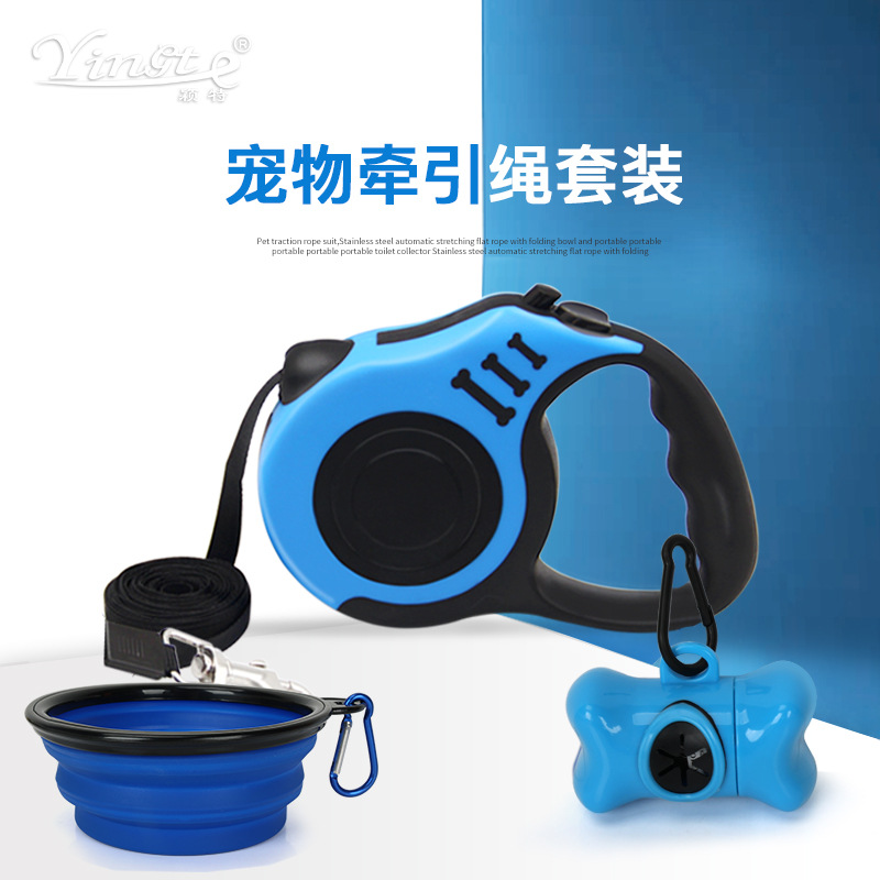 Setelan perjalanan hewan peliharaan tali traksi anjing dapat ditarik otomatis tali traksi mangkuk hewan peliharaan lipat mangkuk anjing toilet