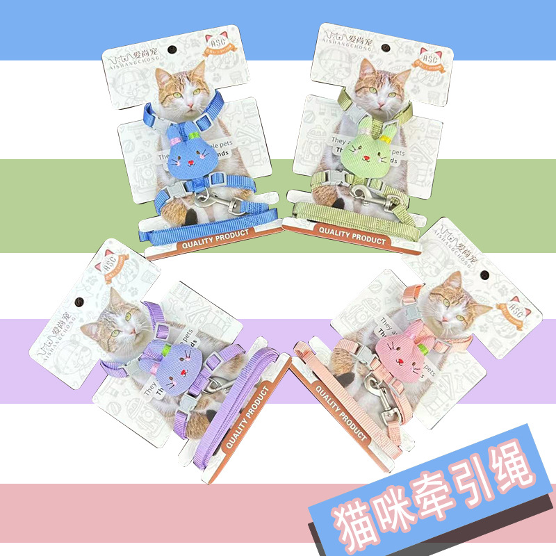 Tali traksi kucing boneka kelinci tepi perlindungan dada tali antirusak setelan macaron anak kucing ke dalam tali kucing