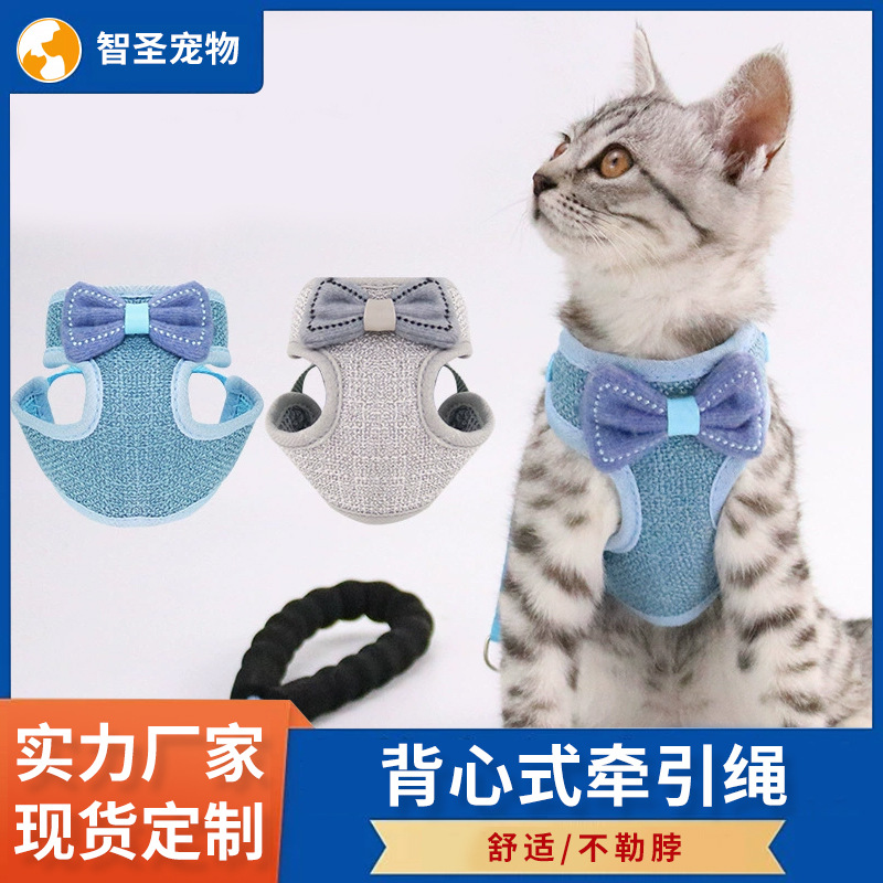 Langsung dari pabrik, tali pengikat kucing model rompi dasi kupu-kupu yang trendi, anti-melarikan diri, tali pengikat kucing yang dapat disesuaikan, tali pengikat harness.