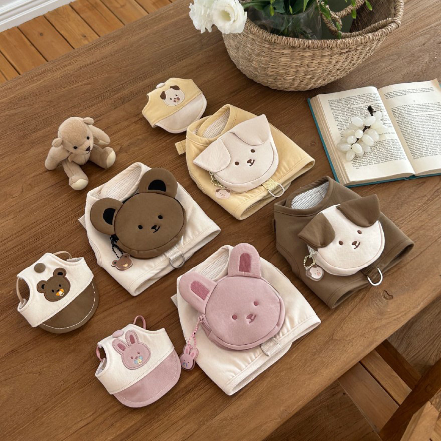 Ransel hewan peliharaan, tali leher beruang teddy anjing tali dada anjing rantai anjing tali Jalan tas makanan ringan tali anjing