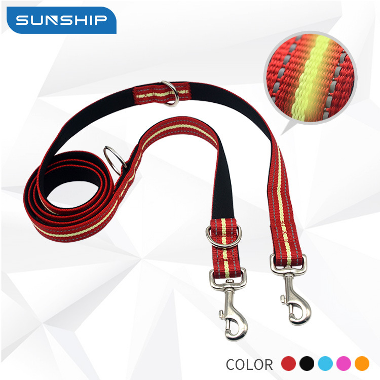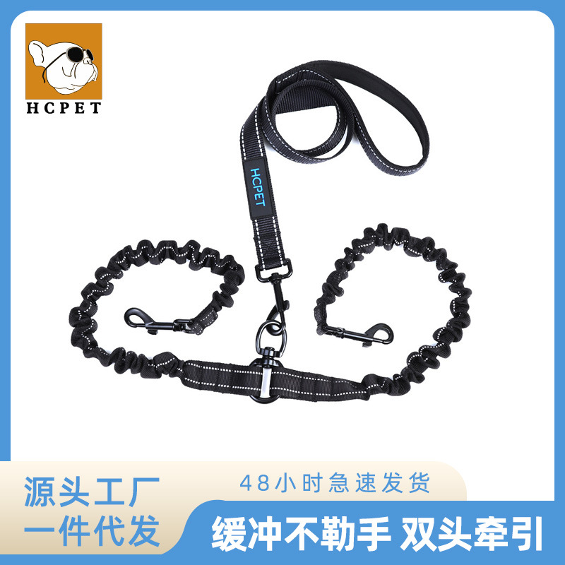 Tali traksi ganda hewan peliharaan, satu tarikan dua kepala Amazon diskon besar anti-winding 1 tarik 2 tali reflektif buffer dua kepala