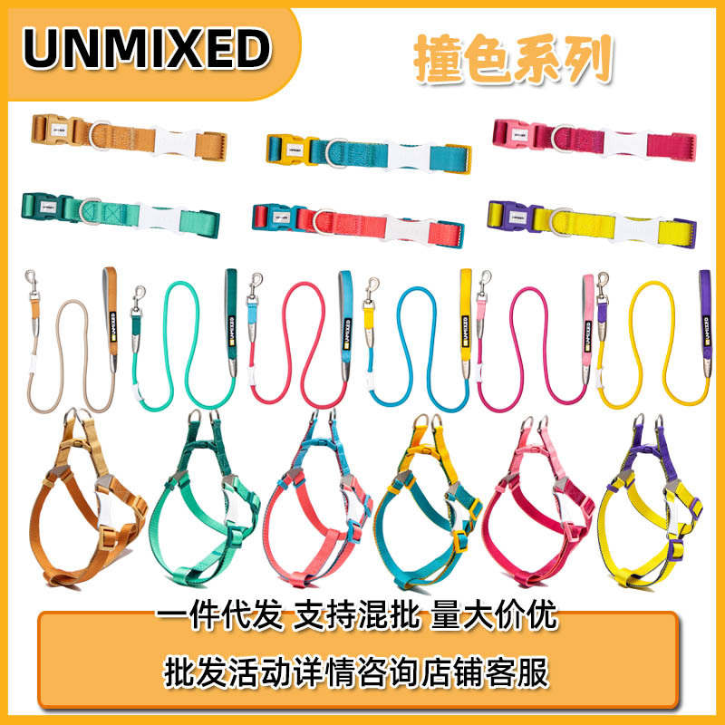 Beruang kotor tidak dicampur seri warna kontras macaron warna dada hewan peliharaan dan leher traksi anjing berjalan traksi anjing