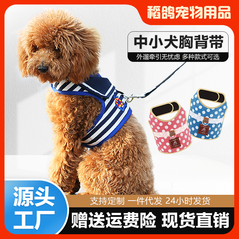 Penjualan langsung pabrik tali anjing retro gaya Navy populer tali dada rantai anjing peliharaan anjing kecil dan sedang tali Jalan