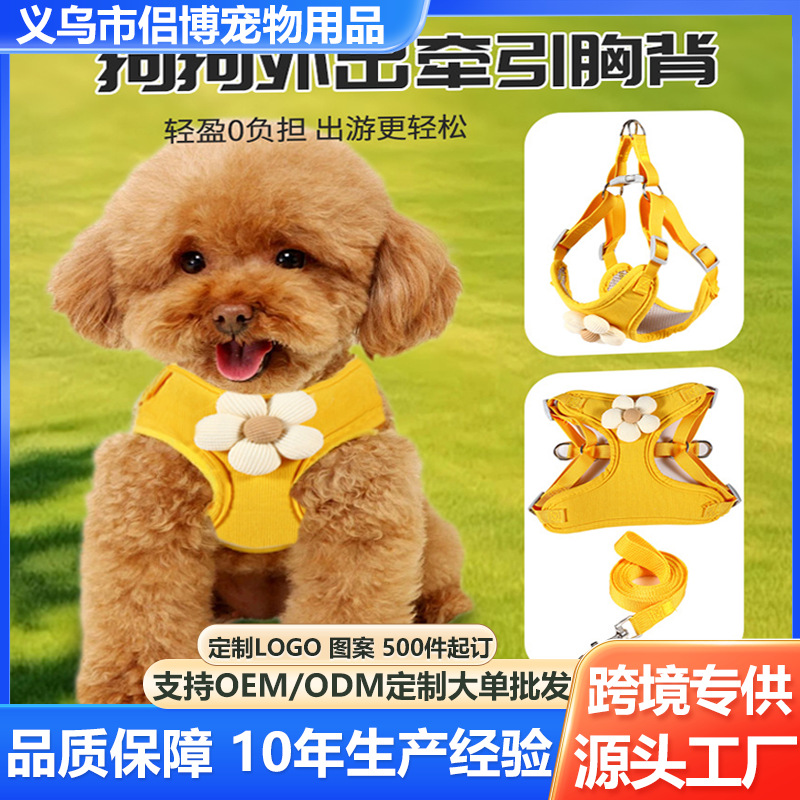 Harness hewan peliharaan grosir lintas batas, harness model rompi bermotif bunga untuk anjing dan kucing, tali pengikat anjing anti-ungkil untuk penggunaan di luar ruangan.