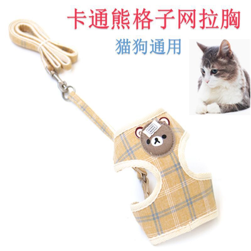 Tali dada hewan peliharaan kotak-kotak, Kartun Beruang klip nilon dada beruang Teddy tali dada tali traksi