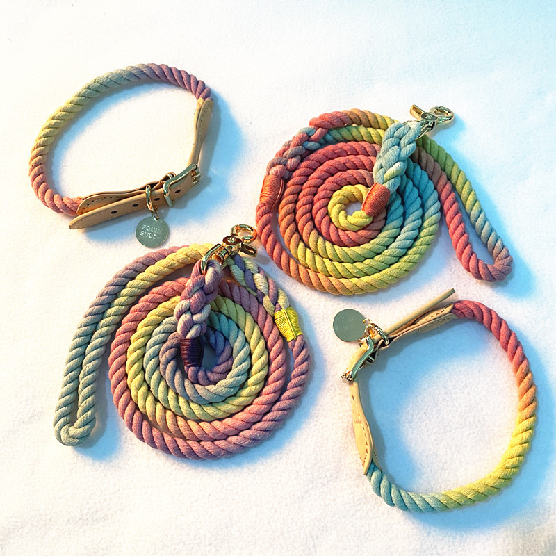 Hewan peliharaan menarik pabrik di saham tenunan tangan persediaan hewan peliharaan tali traksi pelangi gradien tali anjing peliharaan tali kerah