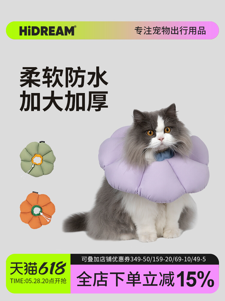 HiDREAM Lingkaran Elizabeth Penutup Kepala Lembut Kucing Sterilisasi Anak Kucing Anti Menjilat Anti-Gigit Anti Air Anjing Stigma Lingkaran