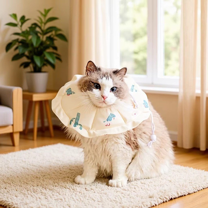 Elizabeth cincin kucing lembut penutup kepala kucing penutup kepala anti serangga anti gigit anti-licking syal hewan peliharaan cincin kerah lucu